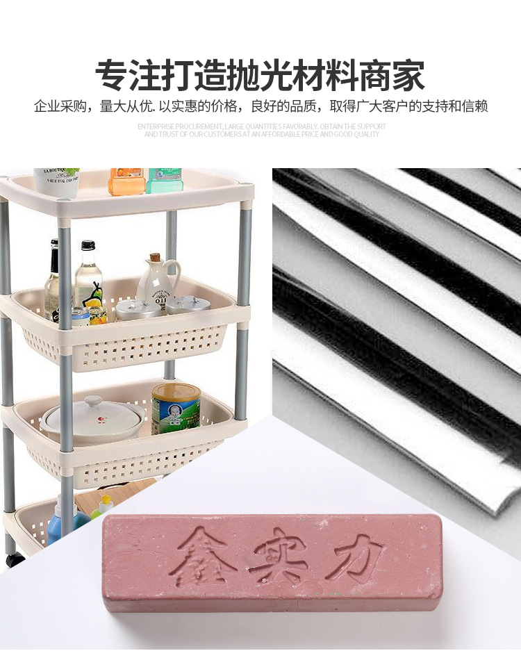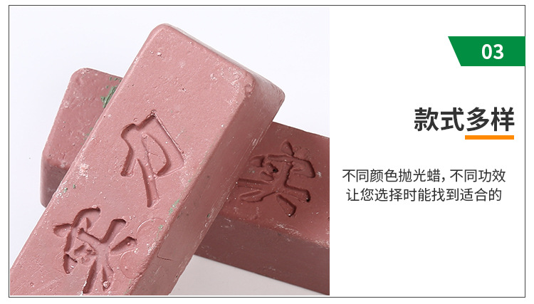 其內含豐富有的油脂,因選材講究,更具有超卓的光澤度及切削力,具有相當不錯拋光效果,拋后紋路光滑細膩。不會燒傷工件,一般配合粗布輪粗拋使用,價格比較實惠。