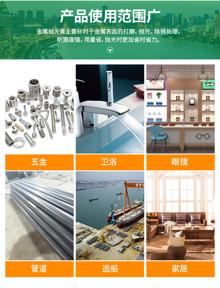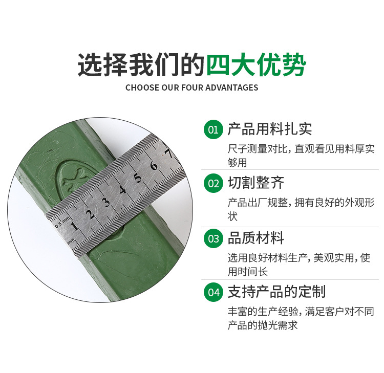 鏡面拋光蠟采用高強全樹脂砂布為原材料,使用高強粘度樹脂膠,產品質量穩定,外觀美觀。適用行業非常廣泛,可用于各類金屬、非金屬產品表面研磨、拋光,采用體貼的人性化梯形長條造型在使用時更加稱心應手,是表面處理打磨的良好選擇